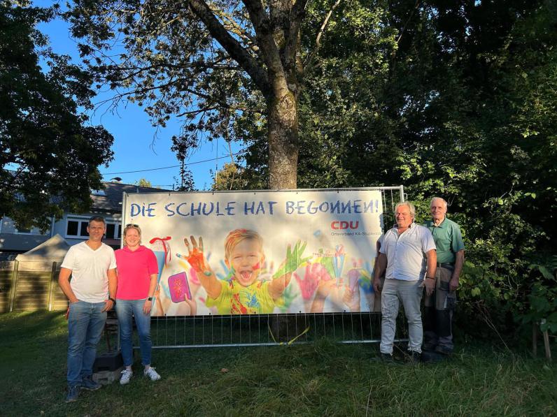 Schon seit 1988 werden von und in Verantwortung des CDU- Ortsverbandes die Banner zum Schulanfang aufgestellt. So auch in diesem Jahr. Wir wollen damit den Schulweg für unsere Kinder sicherer machen. Trotz der Geschwindigkeitsbegrenzung von 30 Km/h im ganzen Ort sollen die Verkehrsteilnehmer mit unseren Bannern auf die Schulkinder aufmerksam gemacht werden. Auch ein Unfall mit der Einhaltung der vorgeschriebenen Geschwindigkeit kann schlimmen Folgen haben. Wir bedanken uns hiermit im Voraus auch bei den Verkehrsteilnehmern für die gebotene Umsicht.